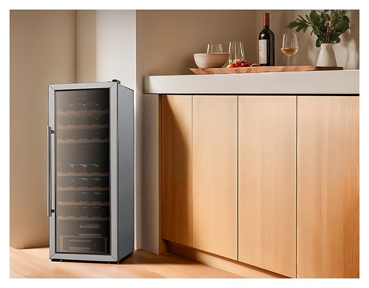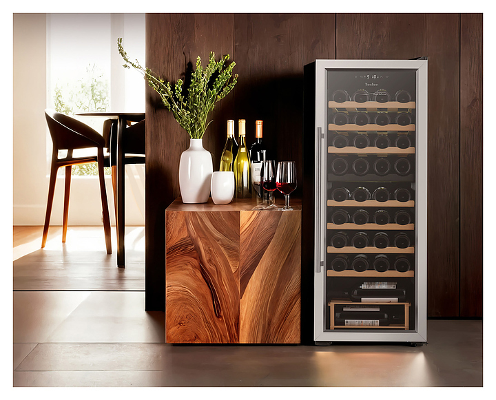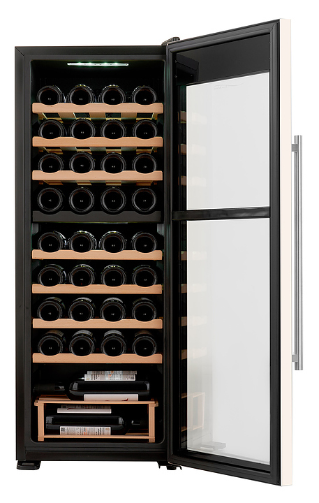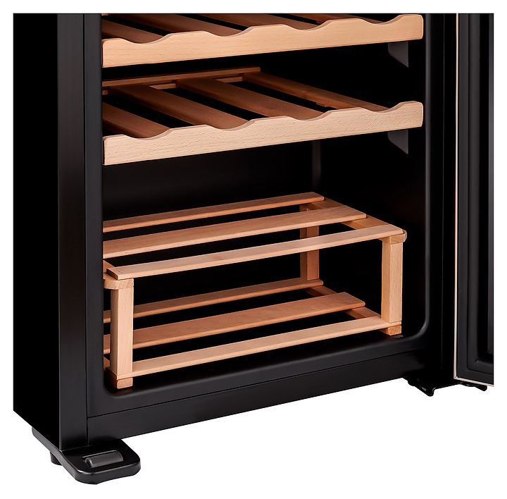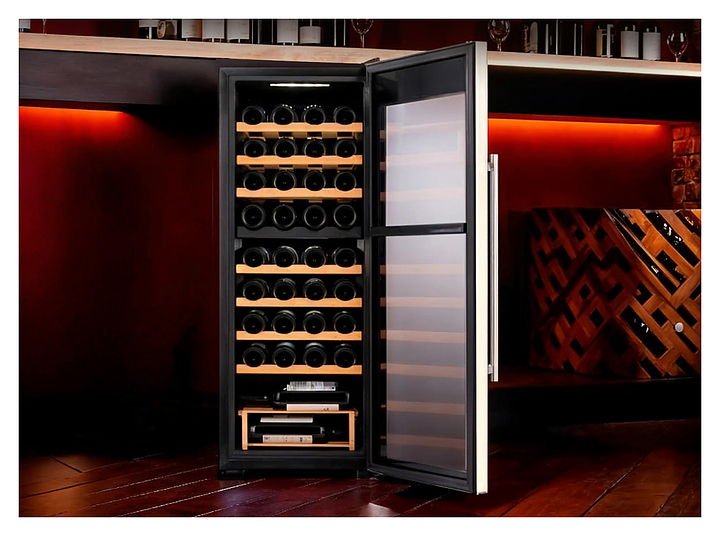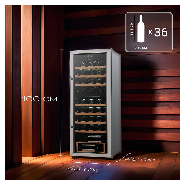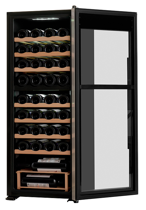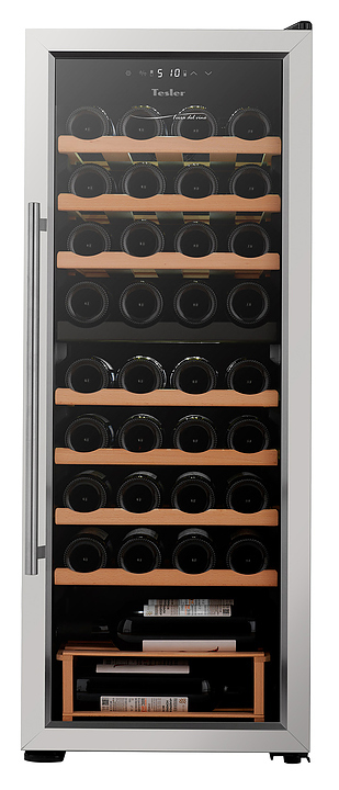 Винный шкаф TESLER CWC-360 предназначен для охлаждения, хранения при оптимальных условиях и демонстрации бутилированного вина различных сортов в барах, ресторанах, специализированных магазинах, подсобных складских помещениях, а также в домашних условиях. Модель оснащена холодильной камерой с 7 полками и 1 подставкой, удобной ручкой, дисплеем, распашной дверью и электронным управлением. Полки и подставка выполнены из дерева, дверца - из двойного стекла с зеркальной поверхностью, рамка - из нержавеющей стали.