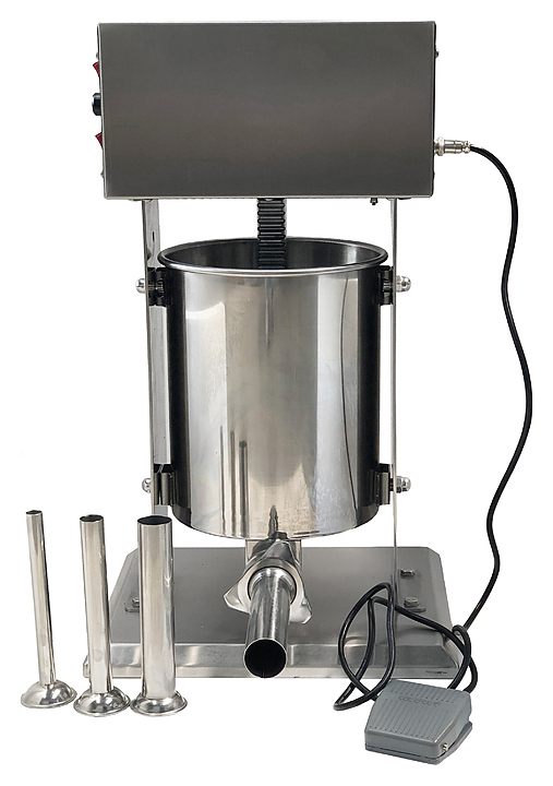 Вертикальный электрический шприц для колбас Kocateq SV10GE используется на предприятиях общественного питания и торговли для изготовления купат и домашних колбас. Корпус выполнен из нержавеющей стали AISI 304.