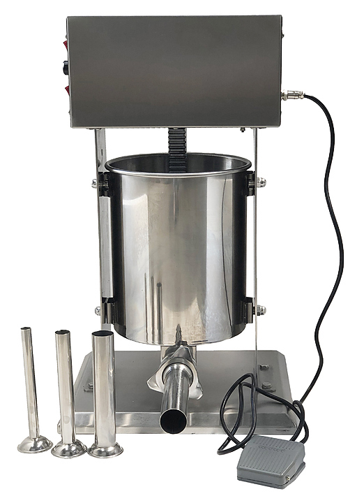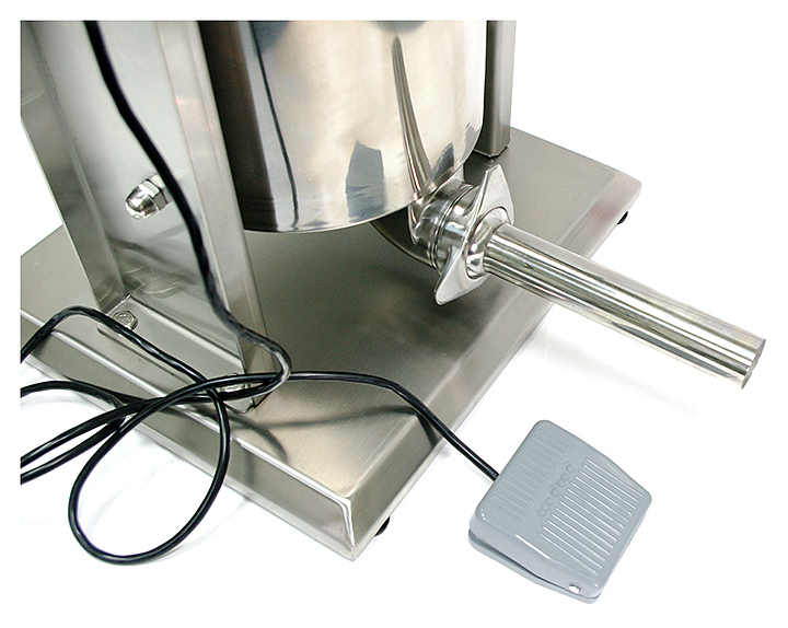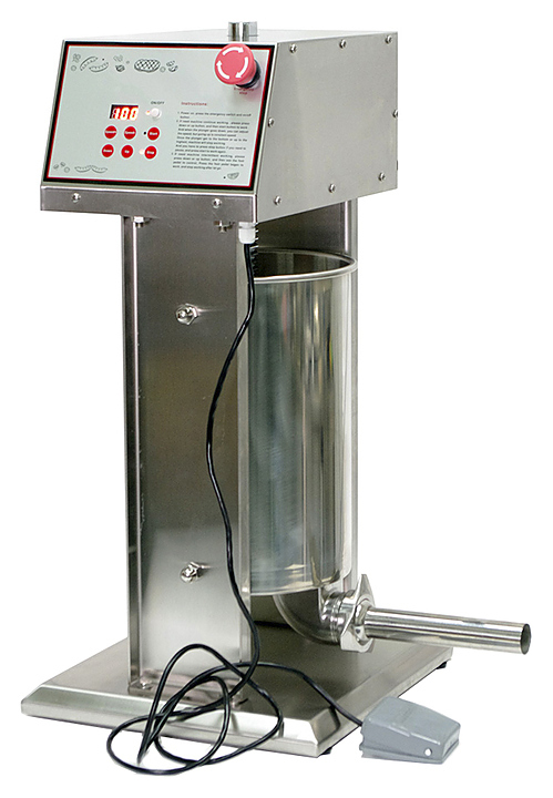 Вертикальный шприц для колбас Kocateq SV15GE используется на предприятиях общественного питания и торговли для изготовления купат и домашних колбас. Модель оснащена электронной панелью управления с кнопками регулирования скорости, опускания и поднятия поршня. Корпус выполнен из нержавеющей стали AISI 304.