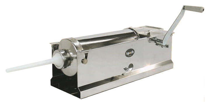Колбасный шприц Apach ASF14 используется на предприятиях общественного питания и торговли для заполнения натуральной или искусственной оболочки различными пастообразными продуктами. Модель имеет горизонтальное исполнение. Сменные насадки позволяют получать различные колбасные изделия. Труба выполнена из нержавеющей стали, поршень - из нейлона.