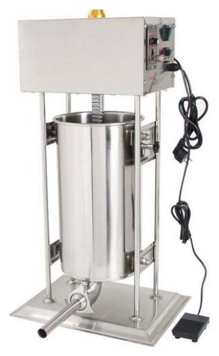 Колбасный шприц Hualian TV-10L используется на предприятиях пищевой промышленности при производстве колбасных изделий и аналогичных продуктов для наполнения начинкой подготовленных оболочек. Модель оснащена электромеханической панелью управления. Корпус и насадки выполнены из высококачественной нержавеющей стали марки AISI304.