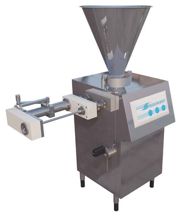 Колбасный шприц Hualian QG-02A используется на предприятиях пищевой промышленности при производстве колбасных изделий и аналогичных продуктов для наполнения начинкой подготовленной коллагеновой оболочки, а также перекачки фарша различной вязкости. Модель оснащена пневматическим поршнем, воронкообразным загрузочным бункером и панелью управления с функциональными кнопками. Корпус и все соприкасающиеся с продуктом компоненты выполнены из пищевой нержавеющей стали.