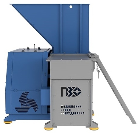 Принцип работы: загрузка сырья в бункер осуществляется вручную или автоматически, при прохождении между роторными ножами вала и стационарными ножами прижимной плиты содержимое измельчается на более мелкие фракции и выгружается сквозь решетку в подготовленную тару.