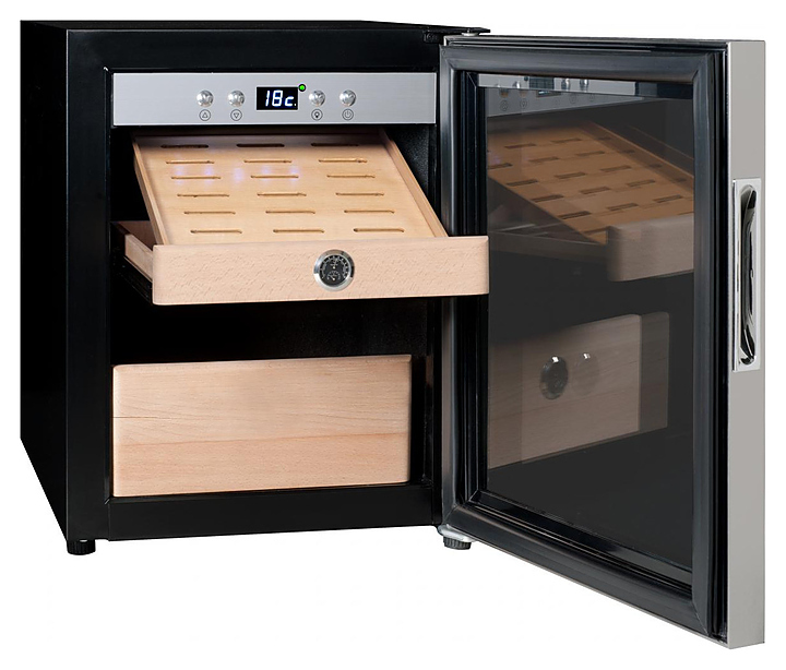 Сигарный шкаф La Sommeliere CIG250 серии Service создает оптимальные условия для сохранения всех свойств табачных изделий в специализированных магазинах, подсобных складских помещениях, в частных домах или квартирах. Оборудование оснащено дверью из стальной нержавеющей рамки со стеклом с защитой от ультрафиолетовых лучей и 2 полками из бука, в том числе 1 презентационной.