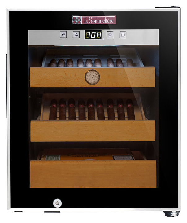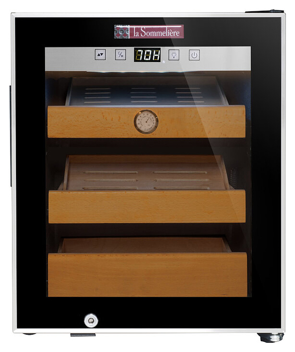 Сигарный шкаф La Sommeliere CIG251 предназначен для хранения в оптимальных условиях и демонстрации табачных изделий в специализированных магазинах, подсобных складских помещениях, в частных домах или квартирах. Модель оснащена панелью управления с регулировкой влажности, температуры и освещения, дверью с уф-защитным стеклопакетом, встроенной ручкой и замком и регулируемыми ножками. Ящики выполнены из дерева.