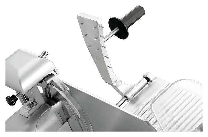 Слайсер Bartscher 275 Plus предназначен для нарезки колбасы ломтиками на предприятиях общественного питания и торговли. Модель оснащена прижимным механизмом, заточным устрои?ством и направляющеи? съемной наклоннои? кареткои? с 2 ручками. Корпус выполнен из алюминия, плексигласа и пластика.