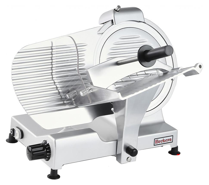 Полуавтоматический слайсер BECKERS BKL 250 предназначен для нарезки мяса, сыра, колбасных изделий и других продуктов питания на ровные и равные ломтики на предприятиях общественного питания и торговли. Модель оснащена встроенным затачивающимся устройством, благодаря чему персонал предприятия легко может поддерживать должный уровень остроты ножа, и удлиненной рукояткой для более удобного захвата со стороны оператора. Ножи выполнены из хромированной стали по новой технологии 3G от итальянского производителя Rasspe, корпус - из аннодированного полированного алюминия.