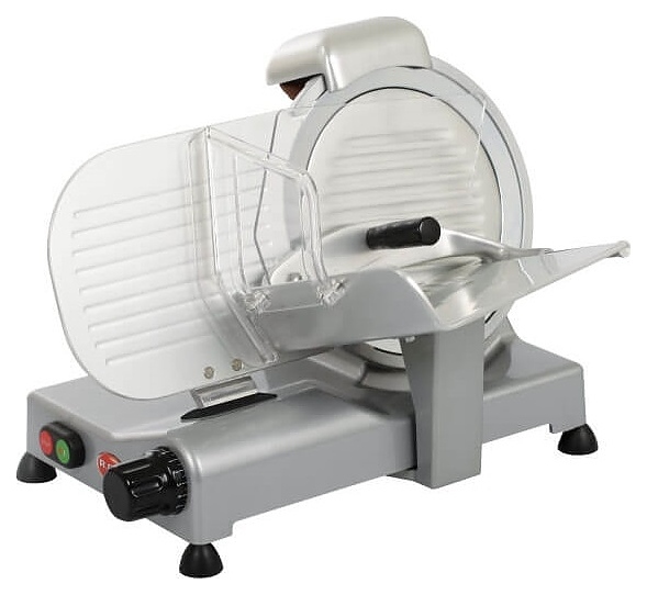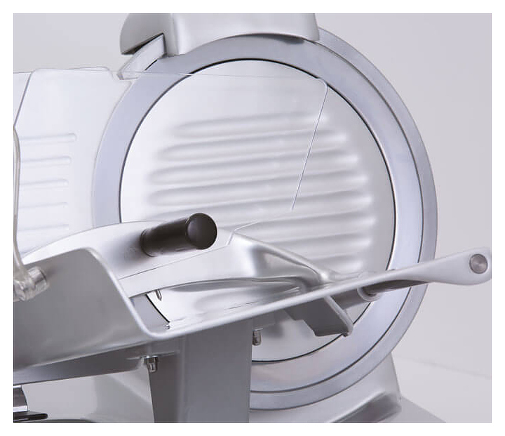 Слайсер RGV Lusso 22 GS Prof предназначен для нарезки мяса, сыров, колбасных изделий, хлеба и других гастрономических изделий на ровные ломтики на предприятиях общественного питания, торговли и пищевой промышленности. Модель оснащена наклонным дисковым ножом. Основание выполнено из алюминия, покрытого пригодной для контакта с пищевыми продуктами краской, лезвие – из закаленной шлифованной стали с твердым хромированным покрытием, крышка ножа, лоток для продуктов и перегородка для регулировки нарезки – из анодированого алюминия с полированным покрытием, защитный экран – из плексигласа.