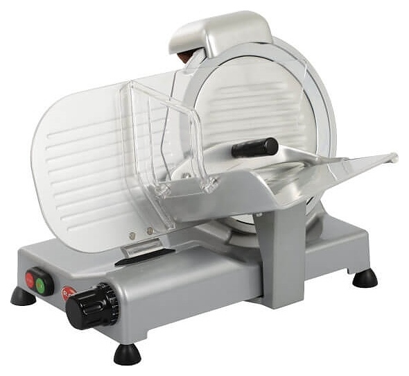 Слайсер RGV Lusso 275 S Prof предназначен для нарезки мяса, сыров, колбасных изделий, хлеба и других гастрономических изделий на ровные ломтики на предприятиях общественного питания, торговли и пищевой промышленности. Модель оснащена наклонным дисковым ножом. Основание выполнено из алюминия, покрытого пригодной для контакта с пищевыми продуктами краской, лезвие – из закаленной шлифованной стали с твердым хромированным покрытием, крышка ножа, лоток для продуктов и перегородка для регулировки нарезки – из анодированого алюминия с полированным покрытием, защитный экран – из плексигласа.