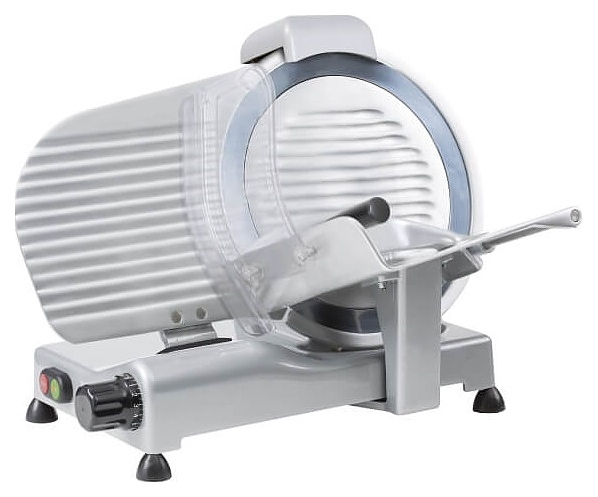 Слайсер RGV Lusso 300 ES Prof предназначен для нарезки мяса, сыров, колбасных изделий, хлеба и других гастрономических изделий на ровные ломтики на предприятиях общественного питания, торговли и пищевой промышленности. Модель оснащена наклонным дисковым ножом. Корпус выполнен из литого под давлением алюминия, покрытого 2 слоями краски, пригодной для контакта с пищевыми продуктами, лезвие – из закаленной шлифованной стали с твердым хромированным покрытием, держатель для пищевых продуктов – из анодированого алюминия с полированным покрытием, защитный экран – из плексигласа.