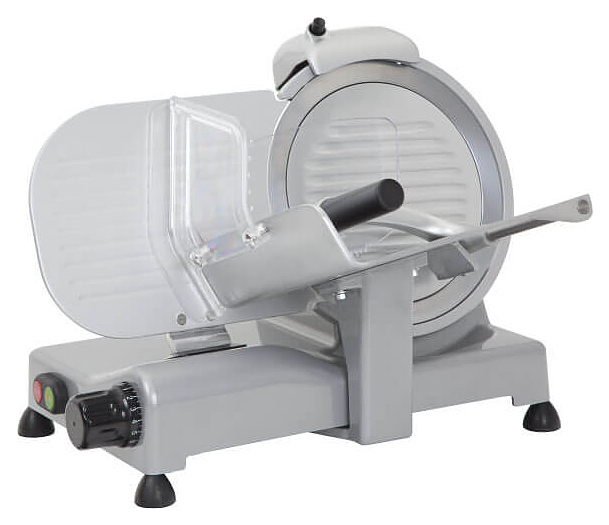 Слайсер RGV Luxury 25 GS PROF предназначен для нарезки мяса, сыра, колбасных изделий и других продуктов питания на ровные и равные ломтики на предприятиях общественного питания и торговли. Модель оснащена вращающейся рукояткой для точной регулировки толщины нарезки и съемным заточным устройством. Литой корпус выполнен из окрашенного алюминия, лезвие - из закаленной стали с тефлоновым покрытием для нарезки сыра, держатель - из алюминия, крышка лезвия и лоток для мяса - из литого анодированного алюминия.