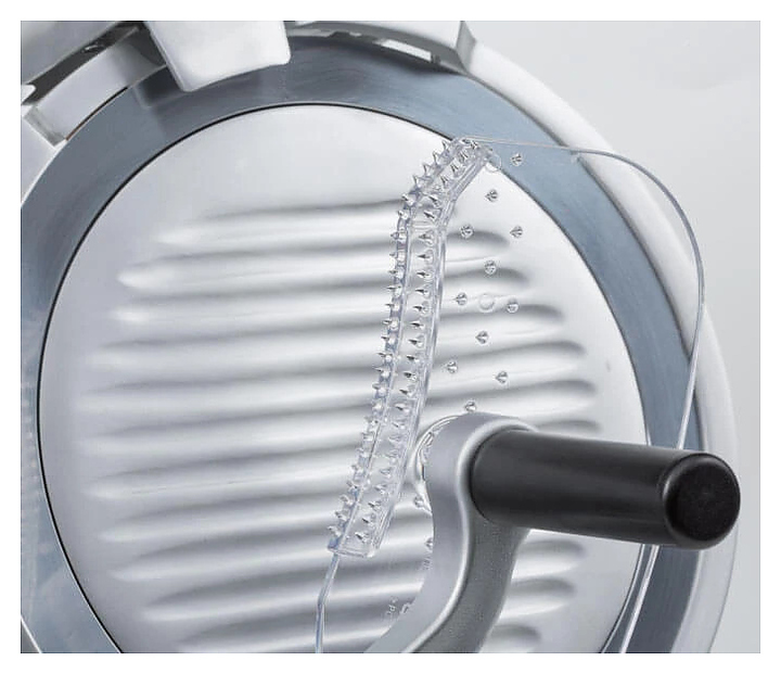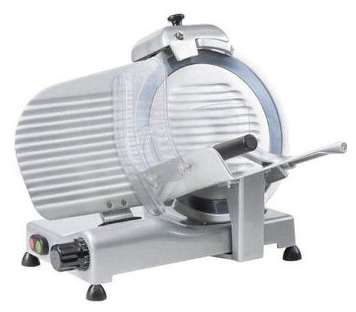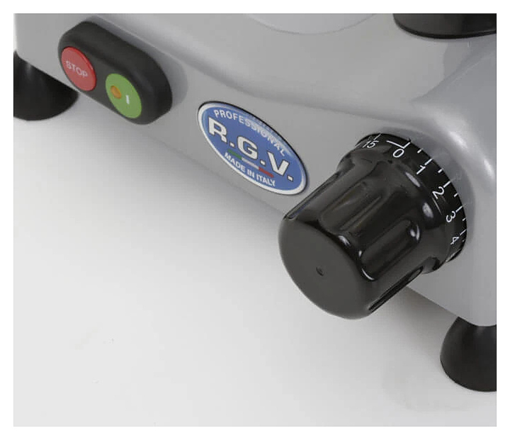 Слайсер RGV Luxury 300 ES PROF предназначен для нарезки мяса, сыров, колбасных изделий, хлеба и других гастрономических изделий на ровные ломтики на предприятиях общественного питания, торговли и пищевой промышленности. Модель оснащена встроенным затачивающим устройством. Корпус выполнен из литого алюминия, нож - из закаленной хромированной стали, держатель - из алюминия, крышка лезвия и лоток для мяса - из литого анодированного алюминия.