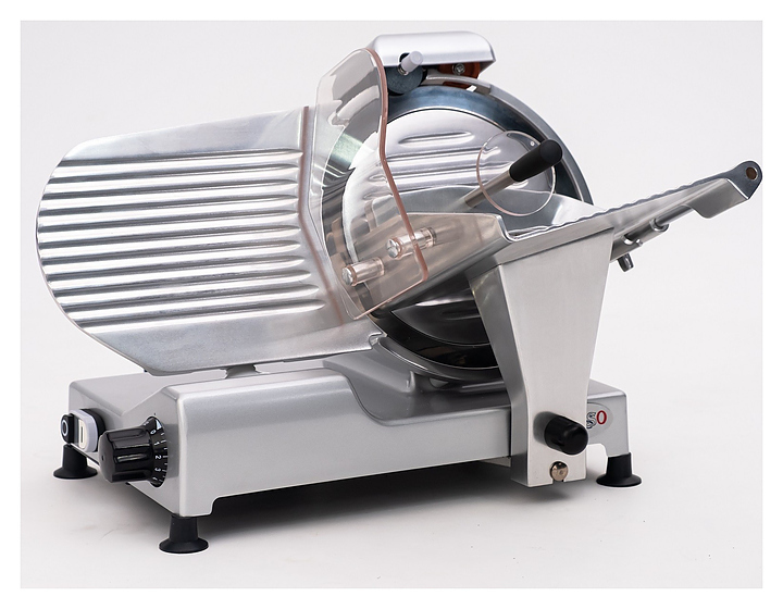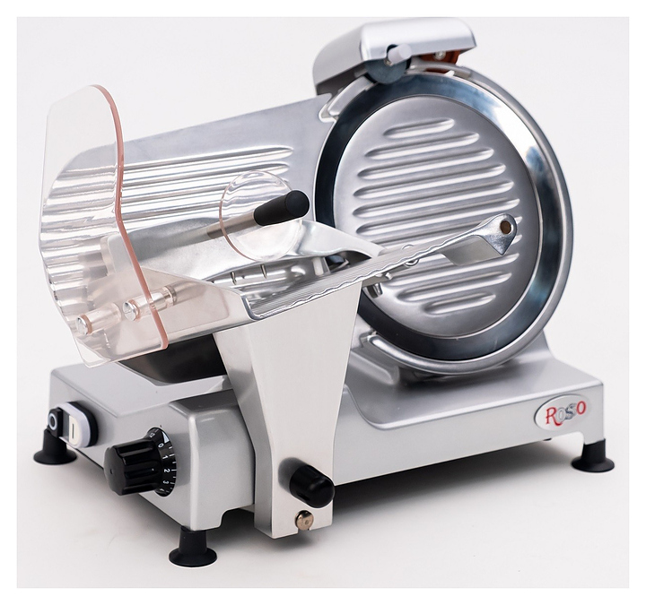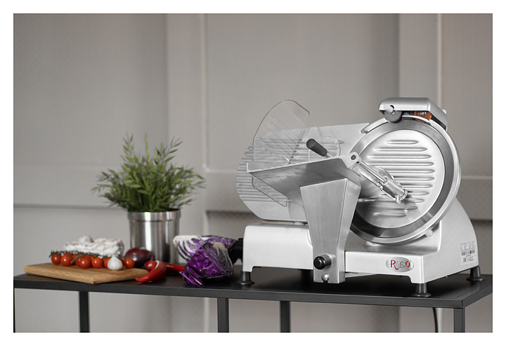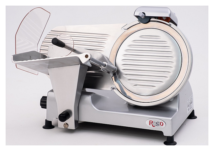 Слайсер Rosso 250ES-10 предназначен для нарезки продуктов на ломтики заданной толщины на предприятиях общественного питания и торговли. Модель оснащена прижимным устройством, защитным кожухом и литым основанием. Корпус выполнен из нержавеющей стали.
