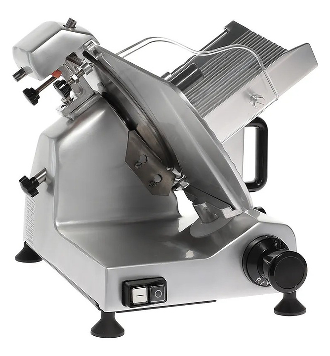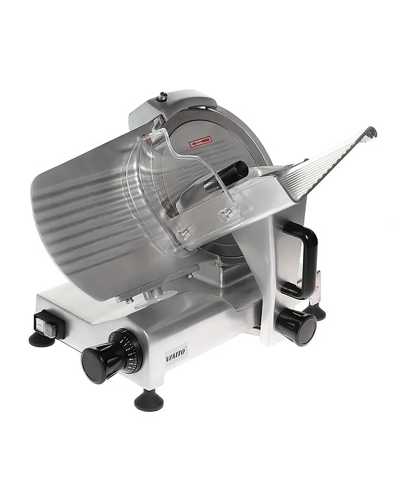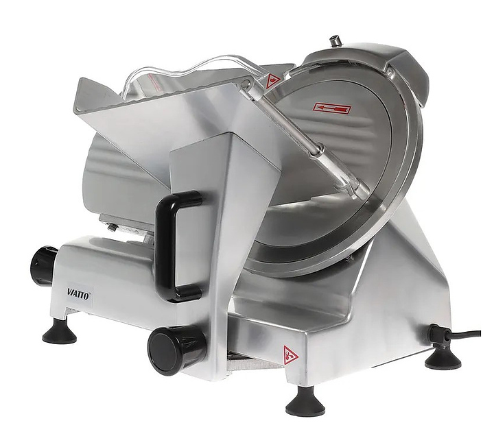 Слайсер VIATTO HBS-300А предназначен для нарезки тонкими одинаковыми ломтиками приготовленного мяса, колбасных изделий, сыра и овощей на предприятиях общественного питания и торговли. Модель оснащена затачивающим устройством, прикрепленным на каретку. Корпус выполнен из окрашенного алюминия.