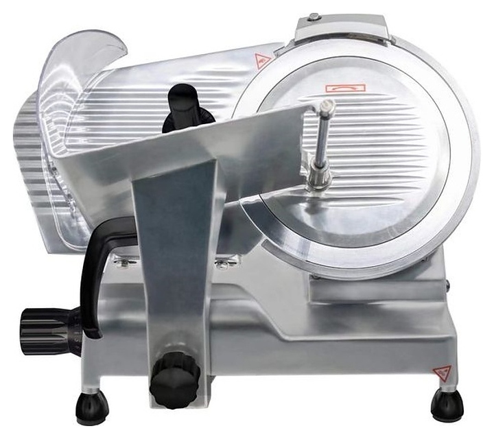 Полуавтоматический слайсер VIATTO VA-300 используется на предприятиях общественного питания и торговли для нарезки мяса, сыра, колбасных изделий и других пищевых продуктов на ровные и равные ломтики. Модель оснащена съемным затачивающим устройством, механизмом регулировки толщины нарезки и устойчивыми нескользящими опорами. Корпус выполнен из алюминия.