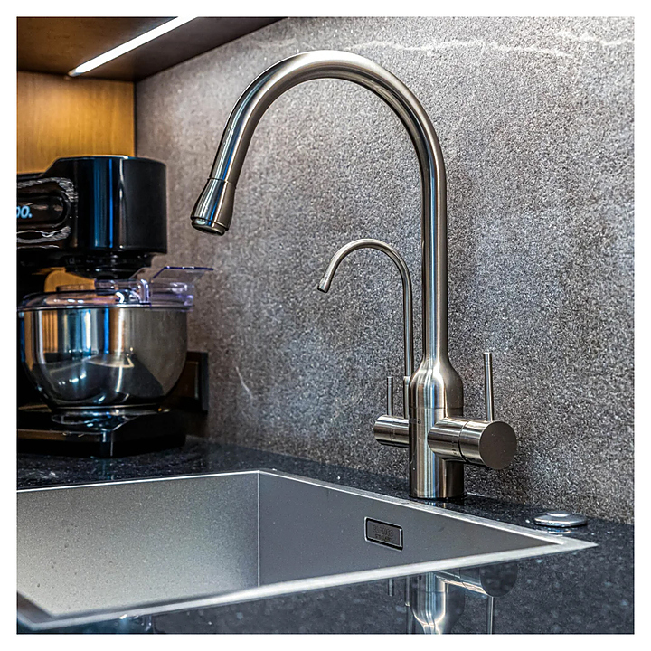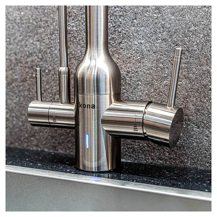 Смеситель-озонатор Kona Ozone SКN-O3-02-SN предназначен для использования в кухонных и ванных помещениях для подачи горячей и холодной воды. Модель оснащена ручкой управления, расположенной сбоку и генератором озона, расположенного под мойкой. Корпус выполнен из высококачественной латуни с матовым никелированным покрытием. Озонирование воды позволяет нейтрализовать хлор и металлы, уничтожить 99,9% микроорганизмов, бактерии и вирусов как в самой воде, так и на поверхностях, которые ею обрабатывают.
