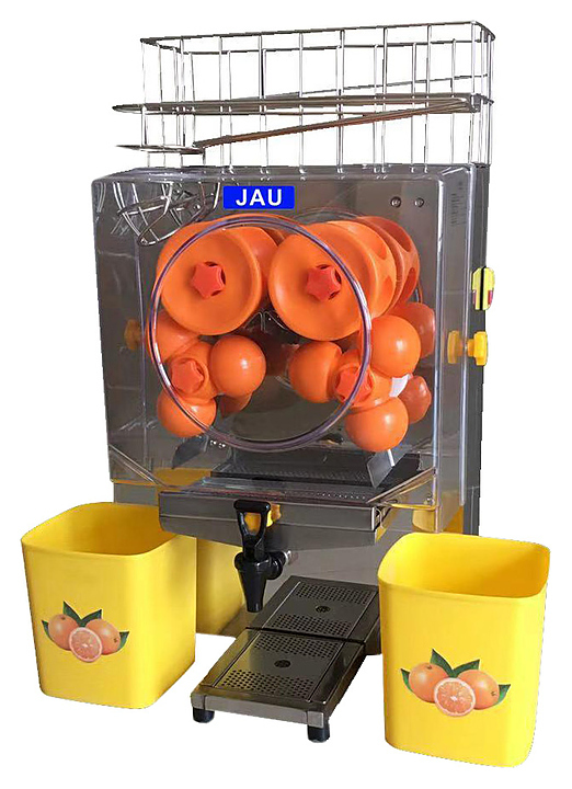 Соковыжималка JAU J-25 предназначена для приготовления натурального сока из различных видов цитрусовых на предприятиях общественного питания и торговли. Модель оснащена автоматической подачей, нарезкой фруктов и отжимом сока и рампой для ручной подачи с резервом на 8-10 фруктов. Механизм соковыжималки разработан таким образом, что в процессе отжима сок не соприкасается с кожурой плода, что защищает от попадания внешних загрязнений и предотвращает появление горечи в напитке. Корпус изготовлен из пластика.