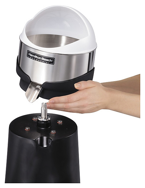 Соковыжималка Hamilton Beach HCJ967-CE используется в кафе, барах и на предприятиях фастфуда для приготовления натурального сока из различных овощей и фруктов. Корпус выполнен из нержавеющей стали и черного пластика.