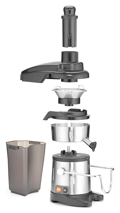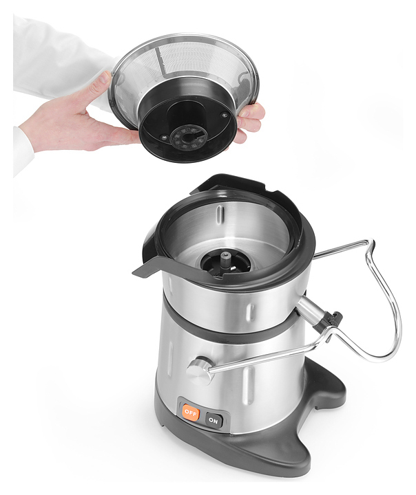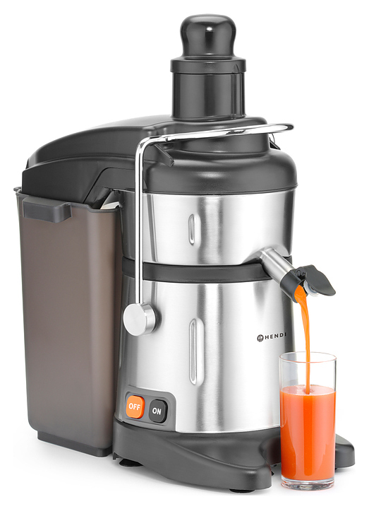 Соковыжималка HENDI 221105 используется в барах, кафе, ресторанах и других местах общественного питания с большой проходимостью, а также в домашних условиях для отжима и получения сока из твёрдых и мягких овощей и фруктов, зелени и трав. Модель оснащена контейнером для мякоти, чашей, корзиной для соковыжималки, крышкой и устойчивыми ножками. Корпус, чаша, корзина для соковыжималки и терочный диск выполнены из нержавеющей стали, трубка подачи и толкатель - из ABS-пластика, контейнер для мякоти и крышка - из полипропилена. Для безопасной работы крышка и предохранительный рычаг должны быть зафиксированы на месте. Не подходит для льда и замороженных продуктов.