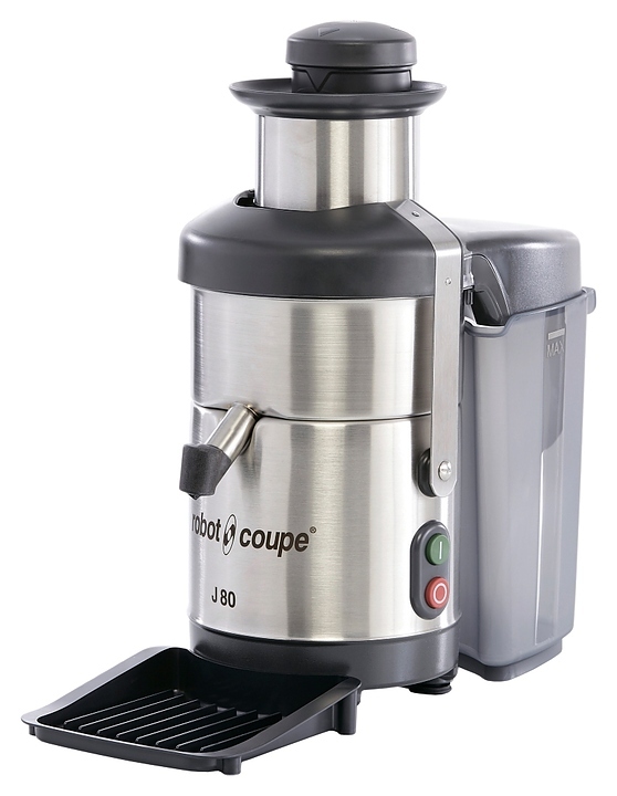 Соковыжималка Robot Coupe J 80 используется на предприятиях общественного питания и торговли для отжима и получения сока. Модель оснащена запатентованной автоматической воронкой для загрузки фруктов и овощей с возможностью работы без толкателя. Моторный блок, чаша, корзина и корпус устройства изготовлены из нержавеющей стали.