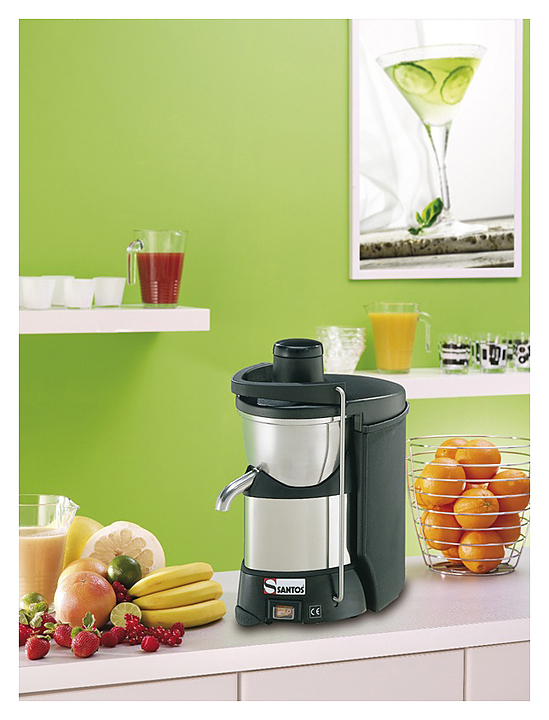 Соковыжималка Santos серия 50 используется на предприятиях общественного питания и торговли для приготовления свежего сока из овощей и фруктов, цитрусовые перед отжимом необходимо очищать. Модель оснащена широким круглым загрузочным отверстием, благодаря которому исключается необходимость разрезания фруктов и овощей, и мощным двигателем с термической защитой. Емкость и корпус выполнены из нержавеющей стали, съемная центрифужная корзина - из микроперфорированного листа нержавеющей стали.