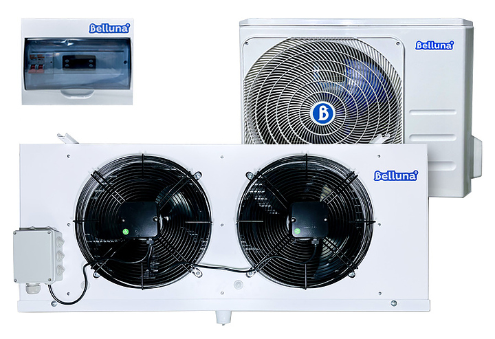 Холодильная сплит-система Belluna U207 серии Универсал предназначена для поддержания необходимого температурного режима в холодильных камерах на предприятиях пищевой промышленности, общественного питания и торговли. Холодильная машина состоит из внутреннего блока-воздухоохладителя и наружного блока. Для работы сплит-системы толщина пенополиуретановых панелей в холодильной камере должна быть не менее 80 мм.