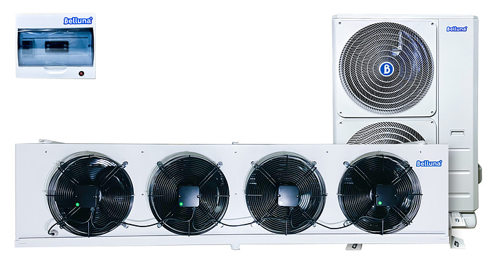 Холодильная сплит-система Belluna U316 серии Универсал предназначена для поддержания необходимого температурного режима в холодильных камерах на предприятиях пищевой промышленности, общественного питания и торговли. Холодильная машина состоит из внутреннего блока-воздухоохладителя и наружного блока. Для работы сплит-системы толщина пенополиуретановых панелей в холодильной камере должна быть не менее 80 мм.