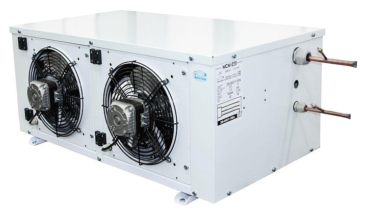 - Внешний блок с установленным компрессором, пластинчато-трубчатым конденсатором, осевым вентилятором обдува конденсатора