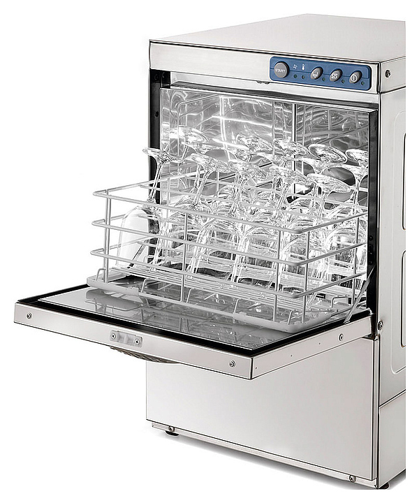 Стаканомоечная машина Dihr DS 40 используется в барах, ресторанах и гостиницах для мойки стаканов, чашек, небольших тарелок и столовых приборов. Модель оснащена шумо- и теплоизолирующей дверцей с двойными стенками и защитным микровыключателем. Корпус выполнен из нержавеющей стали AISI 304.
