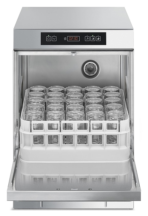 Стаканомоечная машина Smeg SPG405MS серии Ecoline используется на предприятиях общественного питания и торговли для мойки стаканов, чашек и бокалов. Модель оснащена электронным управлением,5-ти ступенчатой системой фильтрации и регулируемыми по высоте ножками. Коопус и бак выполнены из нержавеющей стали AISI 304, задняя панель - из оцинкованной стали, распылители - из пластика и нержавеющей стали.