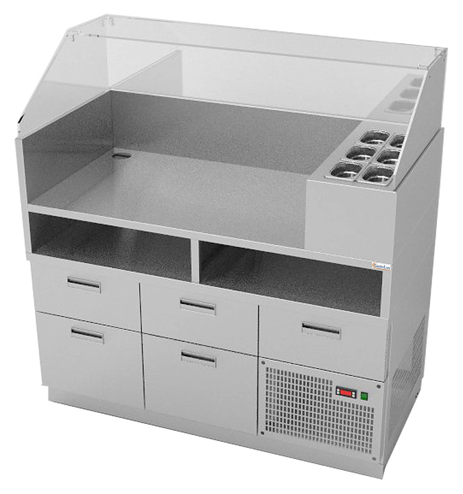 Станция для хот-догов Gastrolux СО2-147/4Я/HD/Sp серии Special предназначена для приготовления хот-догов на предприятиях общественного питания и торговли. Модель оснащена охлаждаемой ванной для установки гастроемкостей с соусами, 5 ящиками, открытой нишей под столешницей и бортом с 3-х сторон. Корпус и рабочая поверхность выполнены из нержавеющей стали AISI 430.