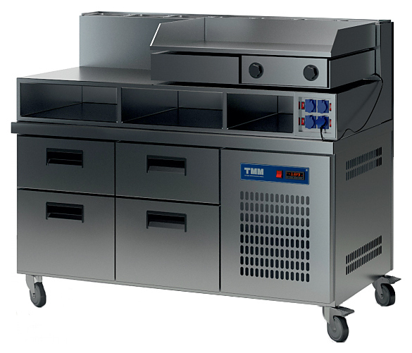 Модульная станция ТММ СХСБ-СМ-1/4Я используется на предприятиях общественного питания и торговли для обработки ингредиентов для приготовления бургеров и кратковременного хранения готовой продукции. Надстройка обеспечивает легкий доступ к используемым компонентам. Цельнозаливной корпус и фасад выполнены из нержавеющей стали.