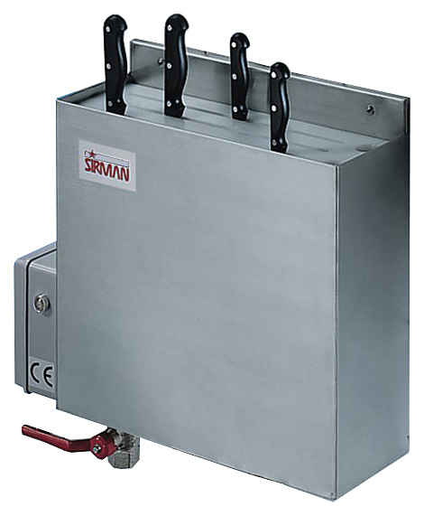 Стерилизатор для ножей Sirman NEW предназначен для дезинфекции столовых приборов на предприятиях общественного питания и торговли. Модель оснащена соединением для входа и выхода воды, а также краном для регулирования и слива во избежание выхода жидкости.