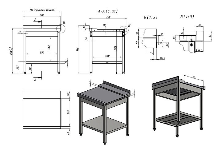 - Столешница: 1 мм