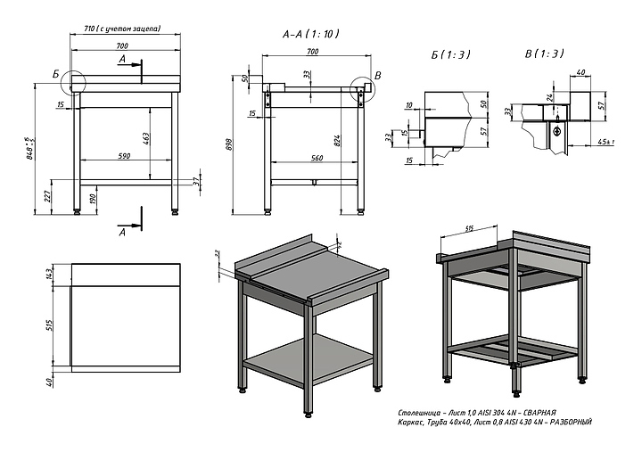 Стол для чистой посуды KAYMAN СПМ-322/0707 используется на предприятиях общественного питания и торговли совместно с посудомоечными машинами TATRA TW.H50+DR и TW.H50+DR+DD. Модель оснащена разборным каркасом из трубы, направляющими, плоским бортом и обвязкой с 4 сторон. Стол устанавливается справа от оборудования и имеет крепление на левой части. Столешница выполнена из нержавеющей стали AISI 304, каркас - из нержавеющей стали AISI 430.
