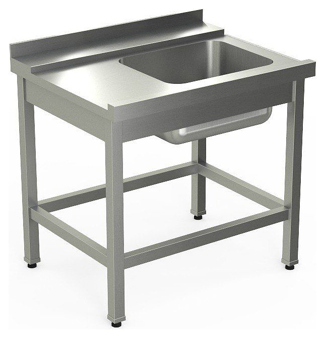 Стол KAYMAN СПМ-321/0907 используется на предприятиях общественного питания и торговли совместно с посудомоечными машинами TATRA TW.H50+DR и TW.H50+DR+DD для расстановки, временного хранения, предварительного ополаскивания и мытья грязной посуды и кухонного инвентаря. Модель оснащена разборным каркасом из трубы, раковиной, направляющими, плоским бортом и обвязкой с 4 сторон. Стол устанавливается слева от оборудования и имеет крепление на правой части. Столешница выполнена из нержавеющей стали AISI 304, каркас - из нержавеющей стали AISI 430.