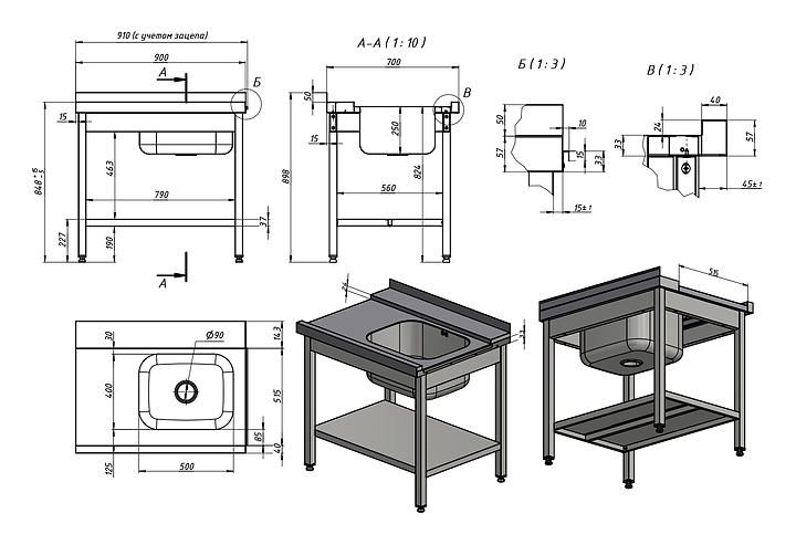 - Толщина стали столешницы: 1 мм