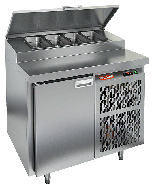 Стол для пиццы HICOLD PZ1-1/GN используется на предприятиях общественного питания и торговли для раскатки теста и обработки ингредиентов, используемых для приготовления пиццы, салатов и других блюд, а также для охлаждения и кратковременного хранения скоропортящихся продуктов и напитков. Модель совмещает в себе рабочую поверхность и охлаждаемый объем, что значительно упрощает работу повара, так как все необходимые компоненты всегда находятся под рукой. Корпус и столешница выполнены из нержавеющей стали.