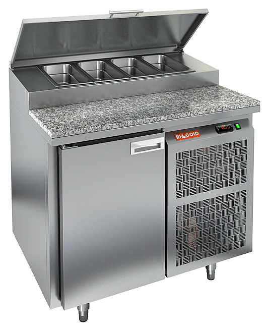 Стол для пиццы HICOLD PZ1-1/GN используется на предприятиях общественного питания и торговли для раскатки теста и обработки ингредиентов, используемых для приготовления пиццы, салатов и других блюд, а также для охлаждения и кратковременного хранения скоропортящихся продуктов и напитков. Модель совмещает в себе рабочую поверхность и охлаждаемый объем, что значительно упрощает работу повара, так как все необходимые компоненты всегда находятся под рукой. Корпус выполнен из нержавеющей стали, столешница - из гранита.
