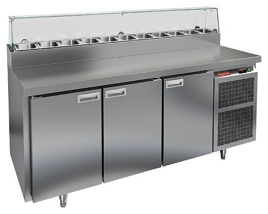 Стол для пиццы HICOLD PZ2-111/GN используется на предприятиях общественного питания и торговли для раскатки теста и обработки ингредиентов, используемых для приготовления пиццы, салатов и других блюд, а также для охлаждения и кратковременного хранения скоропортящихся продуктов и напитков. Модель совмещает в себе рабочую поверхность и охлаждаемый объем, что значительно упрощает работу повара, так как все необходимые компоненты всегда находятся под рукой. Корпус и столешница выполнены из нержавеющей стали.