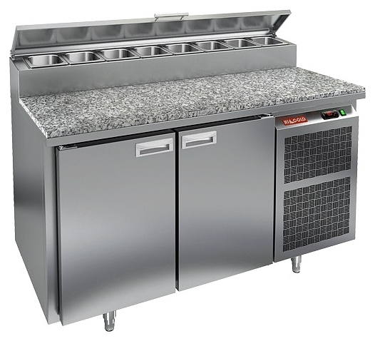 Стол для пиццы HICOLD PZ2-11/GN используется на предприятиях общественного питания и торговли для раскатки теста и обработки ингредиентов, используемых для приготовления пиццы, салатов и других блюд, а также для охлаждения и кратковременного хранения скоропортящихся продуктов и напитков. Модель совмещает в себе рабочую поверхность и охлаждаемый объем, что значительно упрощает работу повара, так как все необходимые компоненты всегда находятся под рукой. Корпус выполнен из нержавеющей стали, столешница - из гранита.