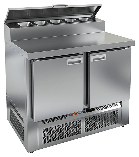 Стол для пиццы HICOLD PZE2-11/GN используется на предприятиях общественного питания и торговли для раскатки теста и обработки ингредиентов, используемых для приготовления пиццы, салатов и других блюд, а также для охлаждения и кратковременного хранения скоропортящихся продуктов и напитков. Модель совмещает в себе рабочую поверхность и охлаждаемый объем, что значительно упрощает работу повара, так как все необходимые компоненты всегда находятся под рукой. Корпус и столешница выполнены из нержавеющей стали.