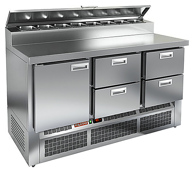 Стол для пиццы HICOLD PZE2-122/GN используется на предприятиях общественного питания и торговли для раскатки теста и обработки ингредиентов, используемых для приготовления пиццы, салатов и других блюд, а также для охлаждения и кратковременного хранения скоропортящихся продуктов и напитков. Модель совмещает в себе рабочую поверхность и охлаждаемый объем, что значительно упрощает работу повара, так как все необходимые компоненты всегда находятся под рукой. Корпус и столешница выполнены из нержавеющей стали.