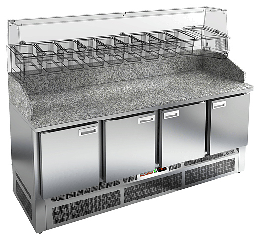 Стол для пиццы HICOLD PZE3-1111/GN используется на предприятиях общественного питания и торговли для раскатки теста и обработки ингредиентов, используемых для приготовления пиццы, салатов и других блюд, а также для охлаждения и кратковременного хранения скоропортящихся продуктов и напитков. Модель совмещает в себе рабочую поверхность и охлаждаемый объем, что значительно упрощает работу повара, так как все необходимые компоненты всегда находятся под рукой. Корпус выполнен из нержавеющей стали, столешница - из гранита.