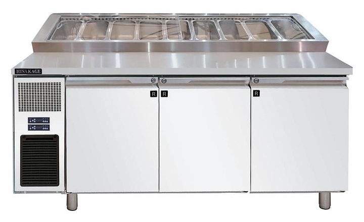 Стол для пиццы HISAKAGE CP-200 предназначен для раскатки теста, обработки ингредиентов для приготовления блюд, заморозки и хранения продуктов на предприятиях общественного питания и торговли. Модель оснащена 3 распашными глухими дверцами и полкой. Корпус выполнен из нержавеющей стали AISI 201.