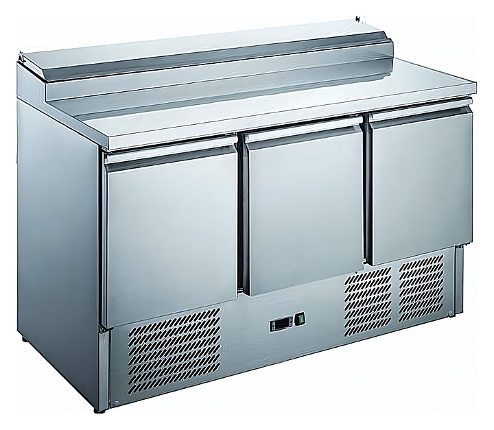 Стол для пиццы HURAKAN HKN-PZL3 предназначен для раскатки теста, обработки ингредиентов для приготовления блюд, охлаждения и хранения продуктов на предприятиях общественного питания и торговли. Модель оснащена системой статического охлаждения с вспомогательным вентилятором.