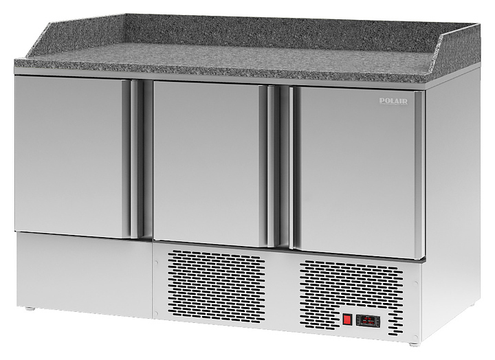 Холодильный стол для пиццы POLAIR TMi3pizza-G серии Grande предназначен для раскатки теста, хранения продуктов и обработки ингредиентов для приготовления пиццы на предприятиях общественного питания и торговли. Цельнозаливные корпус и двери изготовлены из стали и обеспечивают механическую прочность, термоизоляцию, герметичность и долговечность стола, столешница и борт - из натурального гранита, полки - из крашенной оцинкованной проволоки. Оборудование рассчитано на работу при температуре окружающей среды до 43 °С.