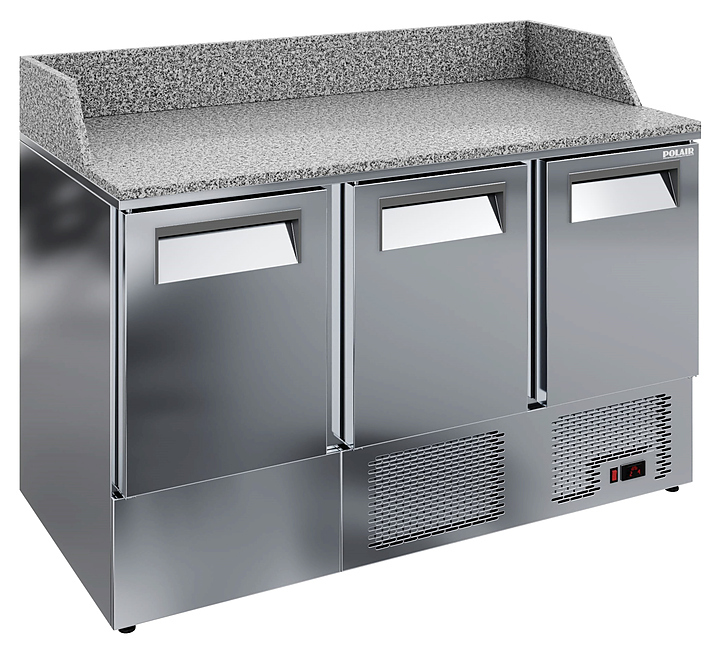 Холодильный стол для пиццы POLAIR TMi3pizza-GC предназначен для раскатки теста, хранения продуктов и обработки ингредиентов для приготовления пиццы на рабочей поверхности на предприятиях общественного питания и торговли. Внешняя (кроме задней стенки) и внутренняя обшивка цельнозаливного корпуса и двери выполнены из нержавеющей стали и обеспечивают механическую прочность, термоизоляцию, герметичность и долговечность стола, столешница и борт - из натурального гранита, теплоизоляция - из пенополиуретана. Оборудование рассчитано на работу при температуре окружающей среды до 43 °С.