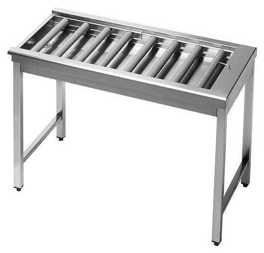 Выходной стол для ?Fagor MR2C предназначен для совместного использования с посудомоечной машиной для размещения чистой посуды на предприятиях общественного питания. Модель оснащена нижней полкой, направляющими для подносов и роликами для удобства перемещения посуды. Каркас выполнен из высококачественной нержавеющей стали.