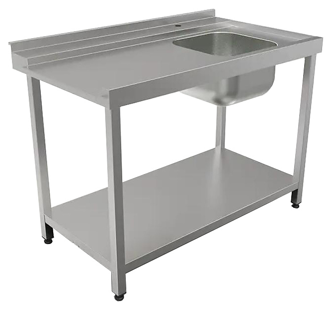 Входной стол для посудомоечной машины Кобор СПМ/2-120/70/П используется на предприятиях общественного питания и торговли. Модель оснащена бортом, отверстием под смеситель и полкой в нижней части. Сварной каркас выполнен из нержавеющей трубы, столешница - из нержавеющей стали AISI 430, усиление - из ЛДСП.